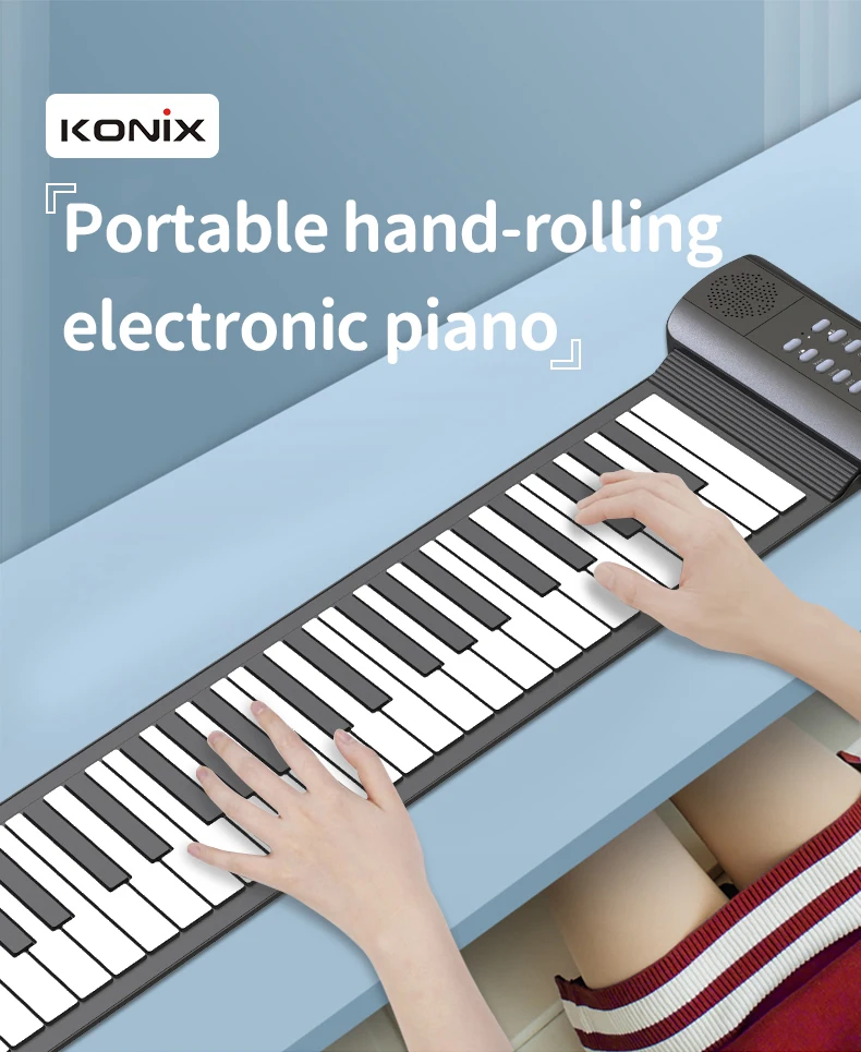 Avec le piano enroulable KONIX, faites de la musique à tout moment et en tout lieu. Léger, performant et facile à utiliser, il est le compagnon idéal des artistes modernes !
