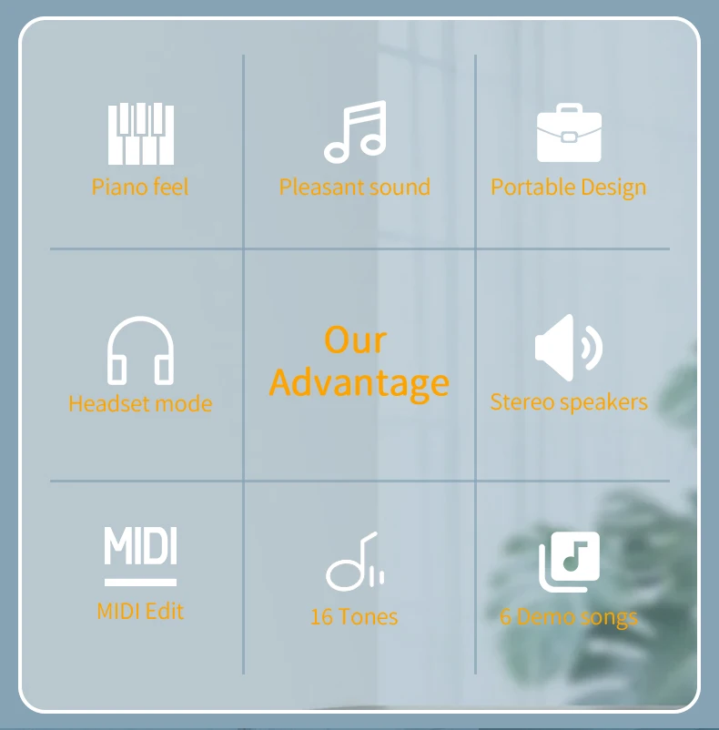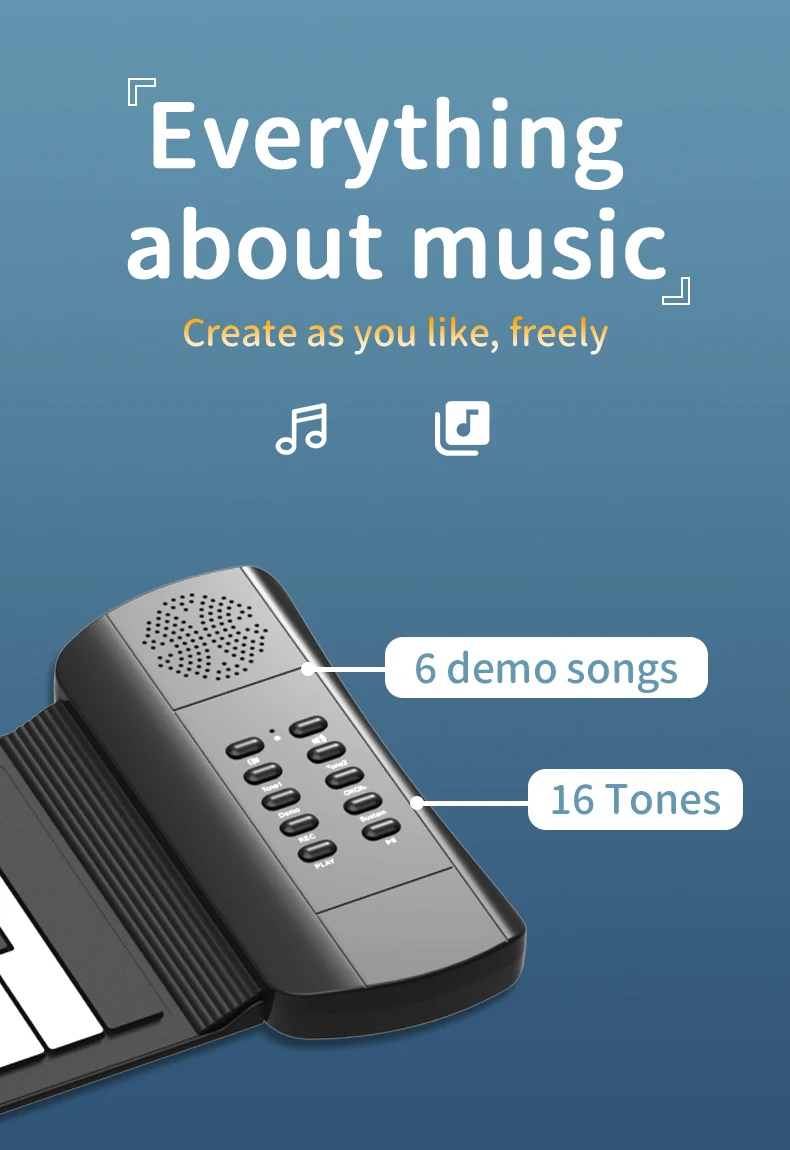 - Expérience de jeu réaliste : Les touches en silicone souple offrent un toucher agréable et une réponse réactive, simulant la sensation d’un véritable piano.